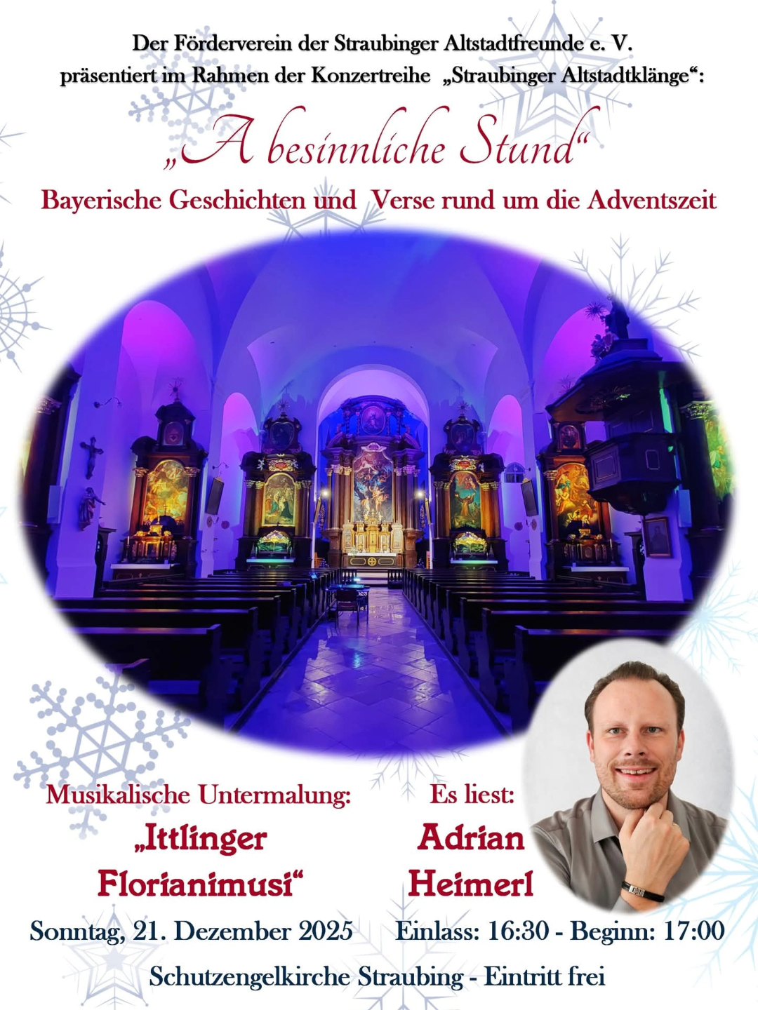 Im Rahmen der Konzertreihe "Straubinger Altstadtklänge" laden wir euch recht herzlich zur "Besinnlichen Stund" ein.